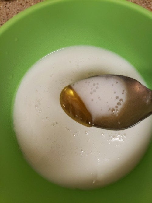 - Mix chia seeds, milk, and sweetener in a bowl. Stir well.