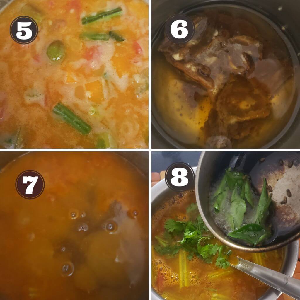 - When veggies are cooked add tamarind extract. Add salt and let it boil till the raw smell goes. Turn off the stove.