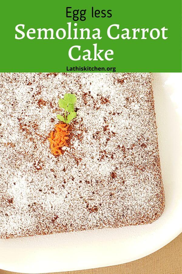 Interesting carrot cake recipe made with suji and without eggs. Will definitely try it out.