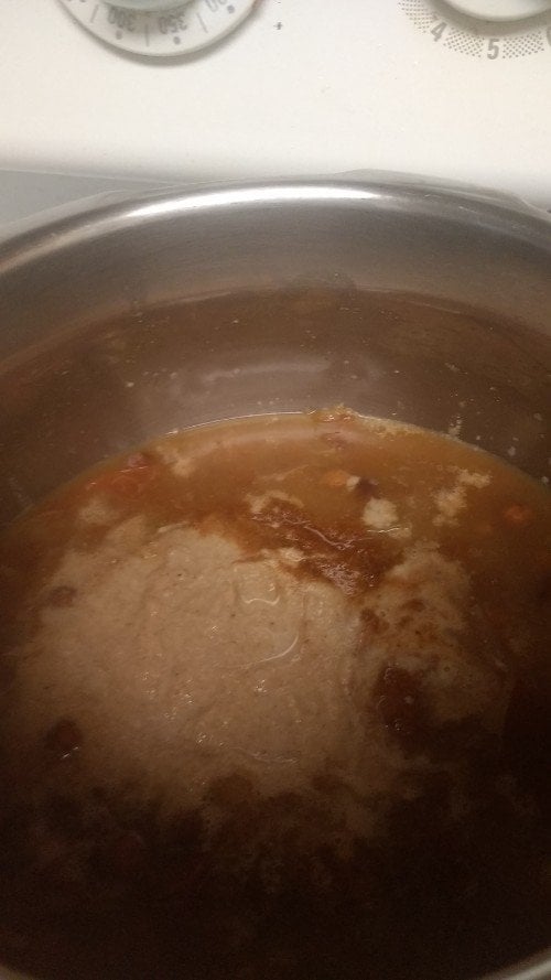 - Once done, after the pressure is released open the lid and mash onions and tomatoes with ladle roughly.