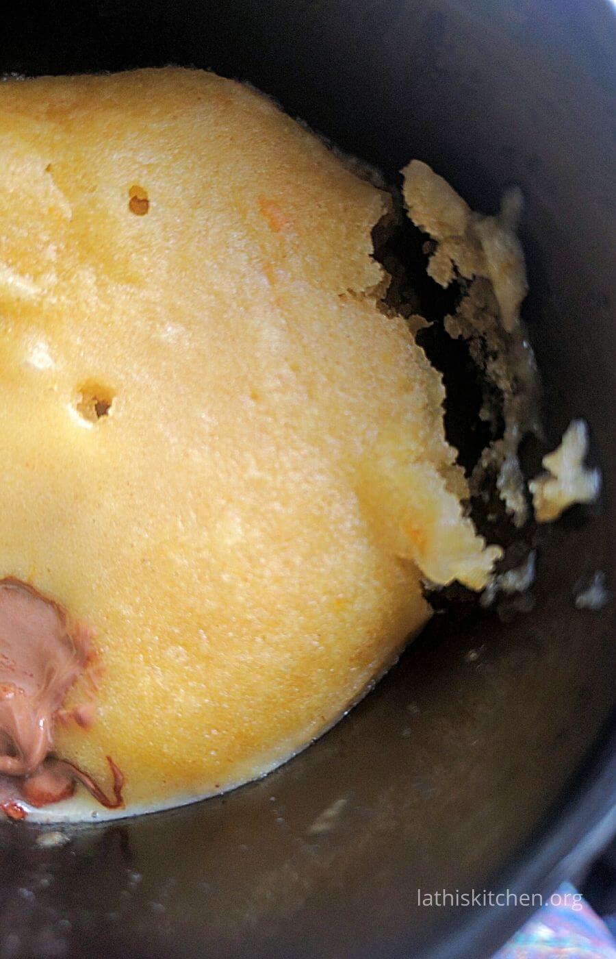 This microwave mug cake gets ready in a minute. I have used whole wheat flour and freshly squeezed orange juice and I also added Nutella for fun. You can skip Nutella if you don’t like it which I doubt strongly. (haha) Grease microwave-safe mug. Take all ingredients in a bowl and give a nice stir. Transfer it to a greased mug and microwave high for a minute. Insert a toothpick to check if it is done. If the toothpick is moist or the batter sticks, microwave for another 30 seconds.