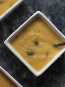 This is my first post in New Year and it has to be something sweet. I love mangoes and want to try different kheer other than Semiya payasam. This mango semolina payasam is easy to make when you have a surprise guest. Use a nice ripe mango-like Banganapalli or Alphonse mango for the rich mango flavor. It takes just 10 to 15 minutes from start to end. So it is apt to make while you have surprise guests.