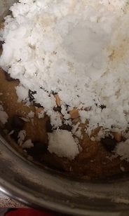 - Add this flour mixer to the coconut oil mixer slowly and mix till the flour is blended together.